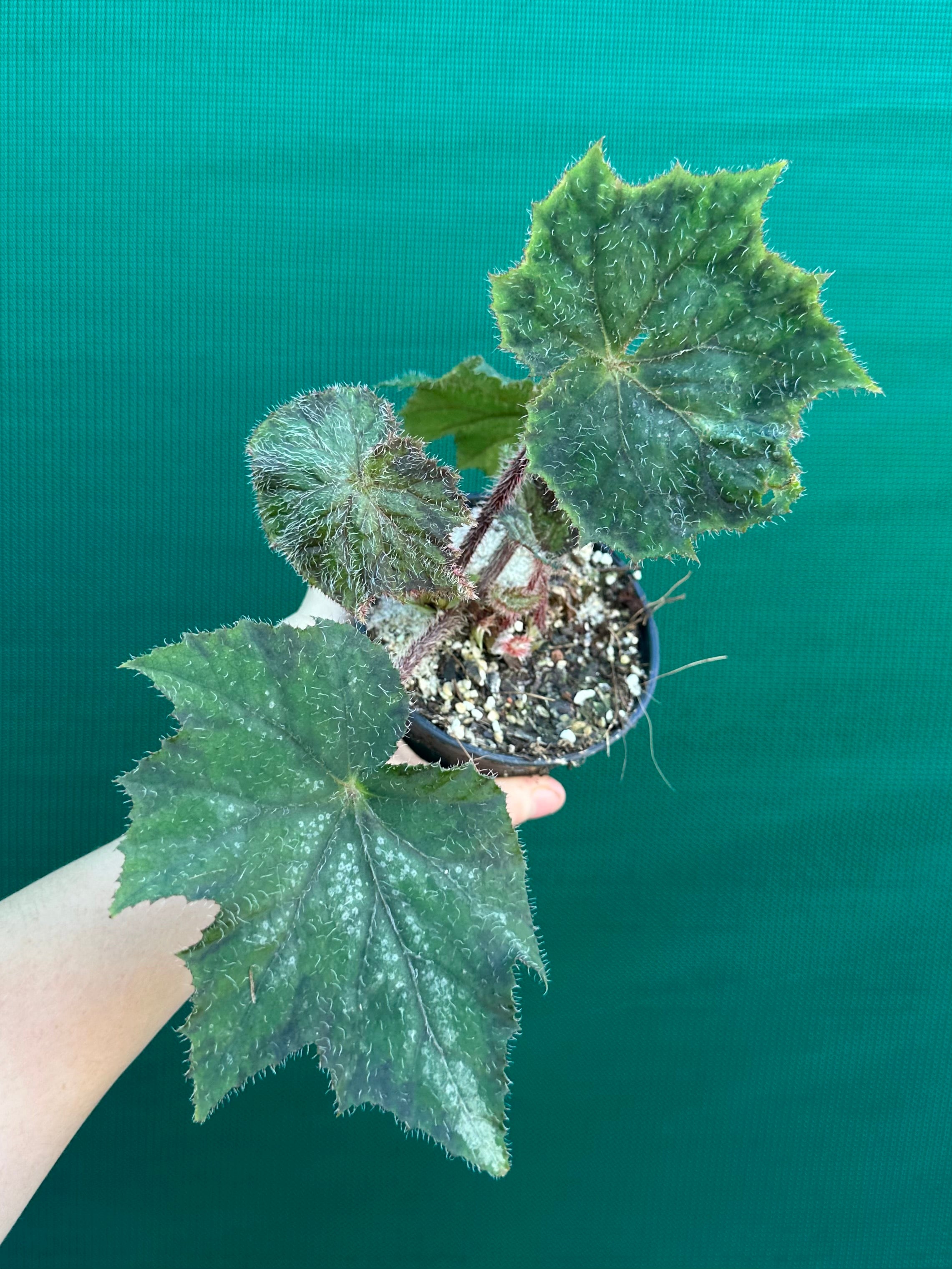 〰️This begonia is very happy at ambient humidity leaves however, if you start to notice brown, crisp looking marks on leaf edges are usually caused by the humidity being insufficient.