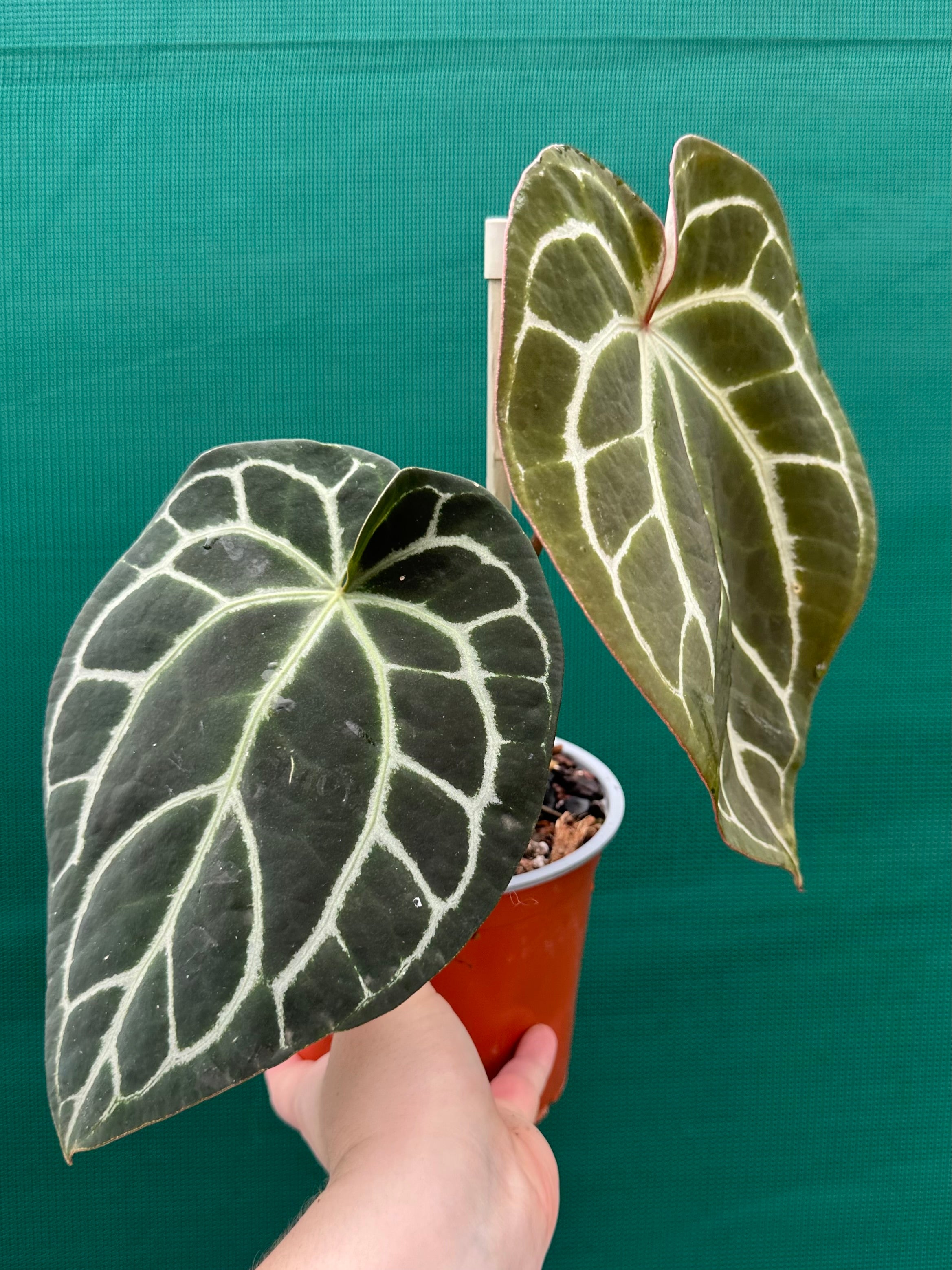 These large leafy Anthuriums favor plenty of bright, indirect light. Due to its tropical roots, these Anthuriums adore moist soil. However, it should never sit in soggy, water-logged soil, as it encourages stress and the proliferation of diseases. Potting medium should be well draining, while keeping it moist, airy, and light.