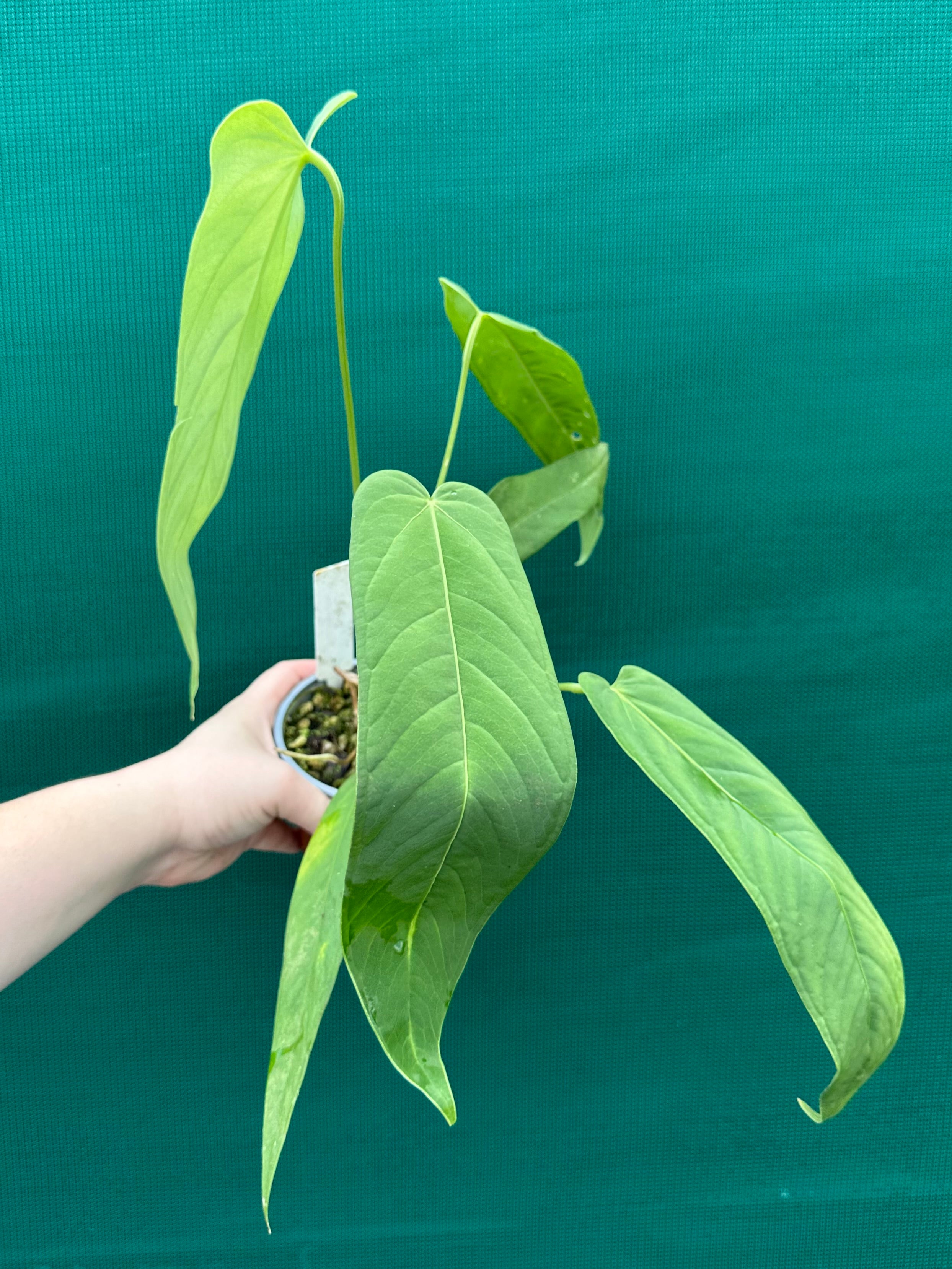 The Anthurium panamense produces velvety, moss-green, lanceolate leaves that can reach up to 90cm long when the plant is mature. These pure, multi-planted specimens will make a stunning addition to any collection!