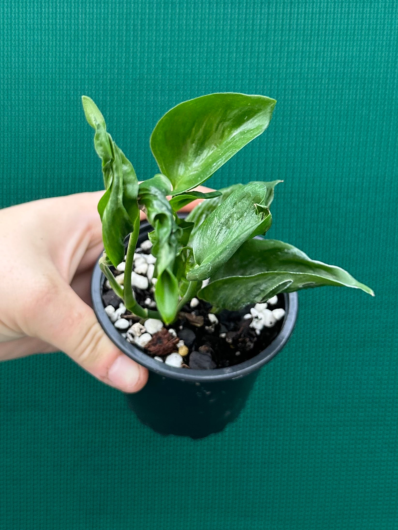 Shangri La Pothos is a cultivar bred from the standard golden pothos. It has bright-green leaves with yellow variegation but it’s the leaf texture that makes this plant truly amazing. This plants leaves look shrivelled compared to other pothos’ leaves that are flat. Shangri La’s leaves become wrinkly and somewhat rolled up as the leaf matures.