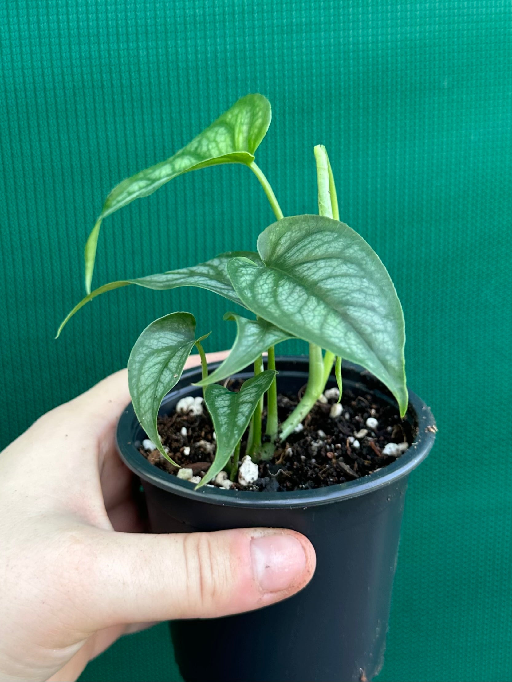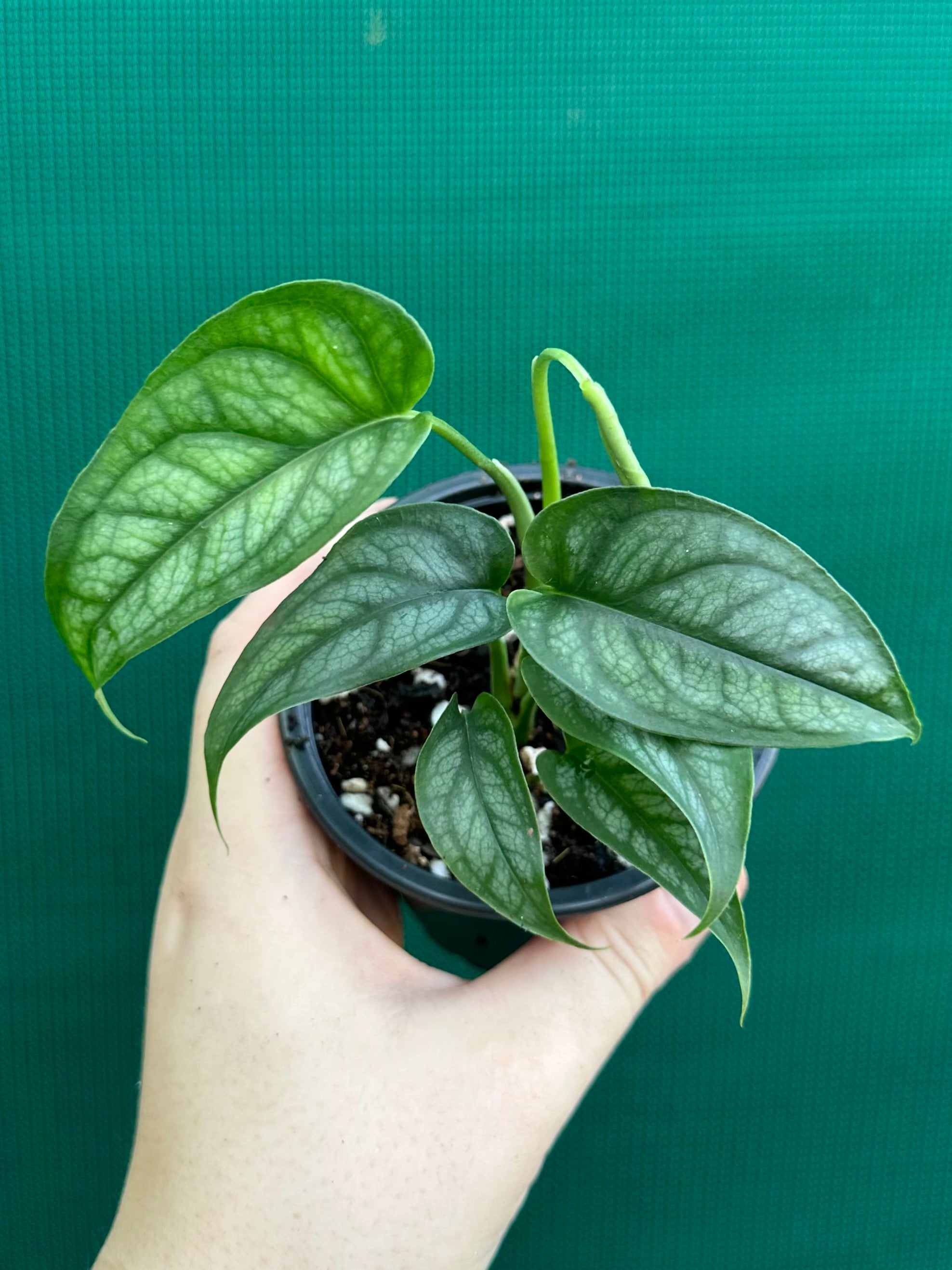 Monstera Siltepecana is a very versatile Monstera variety originating from Ecuador. The leaves are a grey green shade with dark green veins and silver markings or reflections. This plant will happily trail, hang or climb up a support. When the plant grows up, the juvenile growth matures by getting larger and developing fenestrations (holes) in the leaves. It will mature generally at a more rapid rate when given the opportunity to climb up a totem or other climbing structure. This Monstera also makes a nice small trailing plant in a terrarium or vivarium but will also look amazing when growing in a hanging basket.