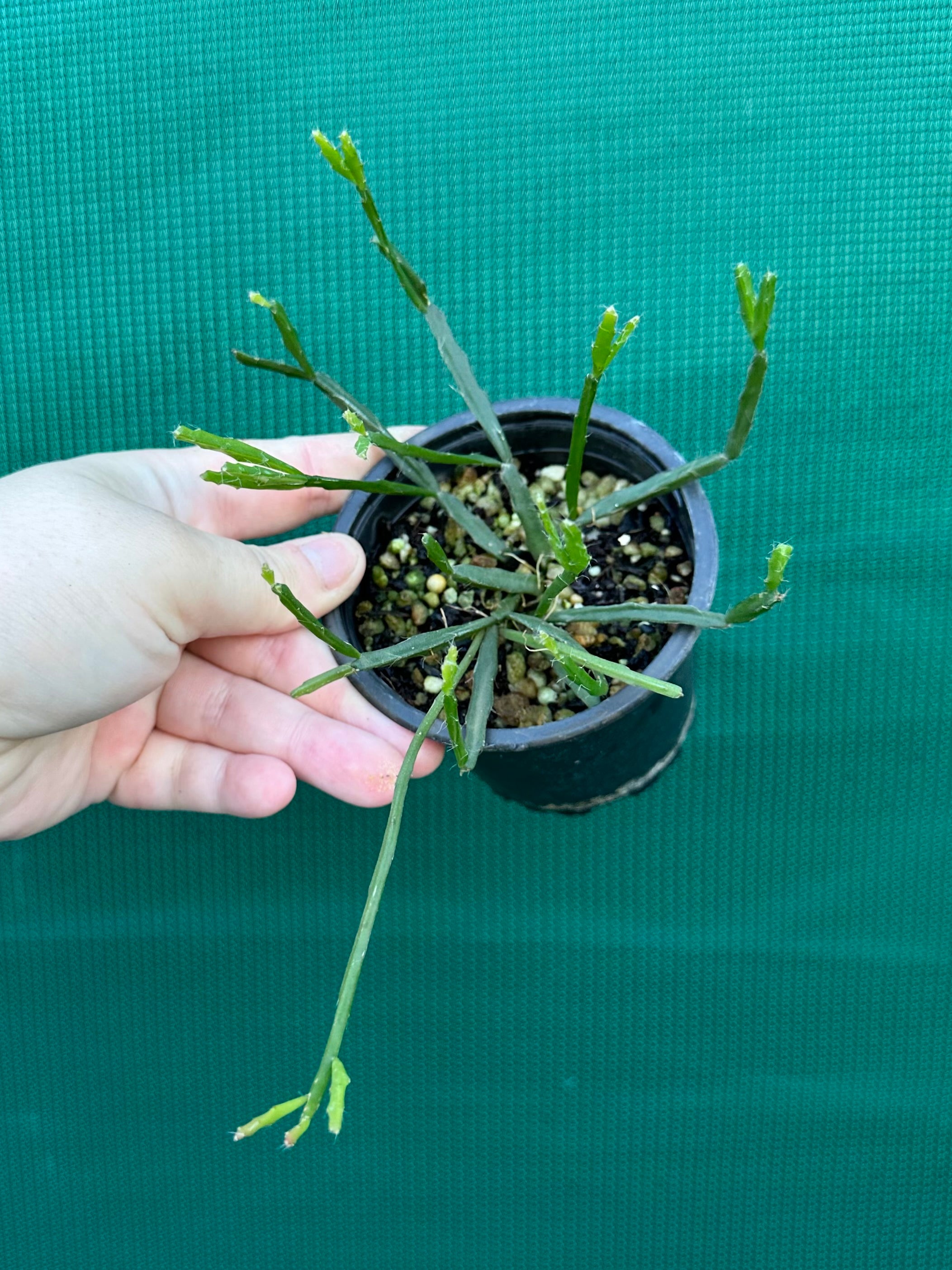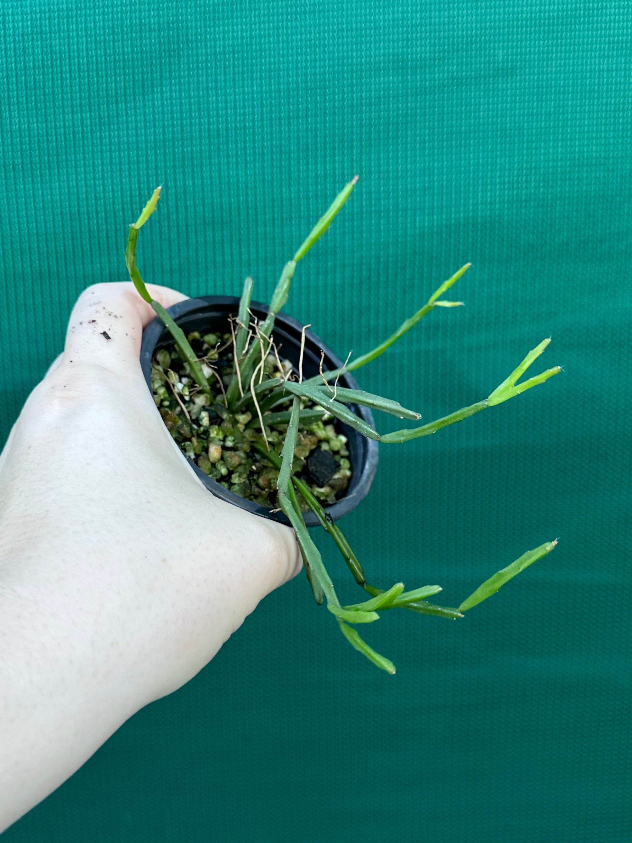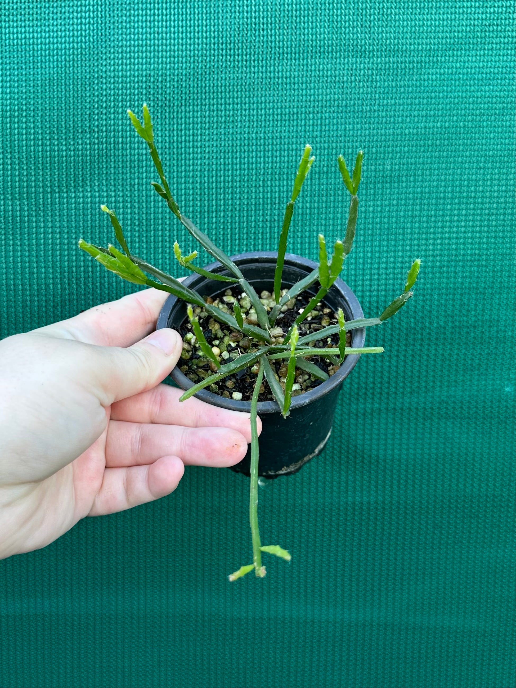 The Rhipsalis genus comprises over 60 species native to South America. Most are epiphytic (live in trees). Many have hanging stems making them excellent hanging basket specimens. Most prefer shade and some humidity.