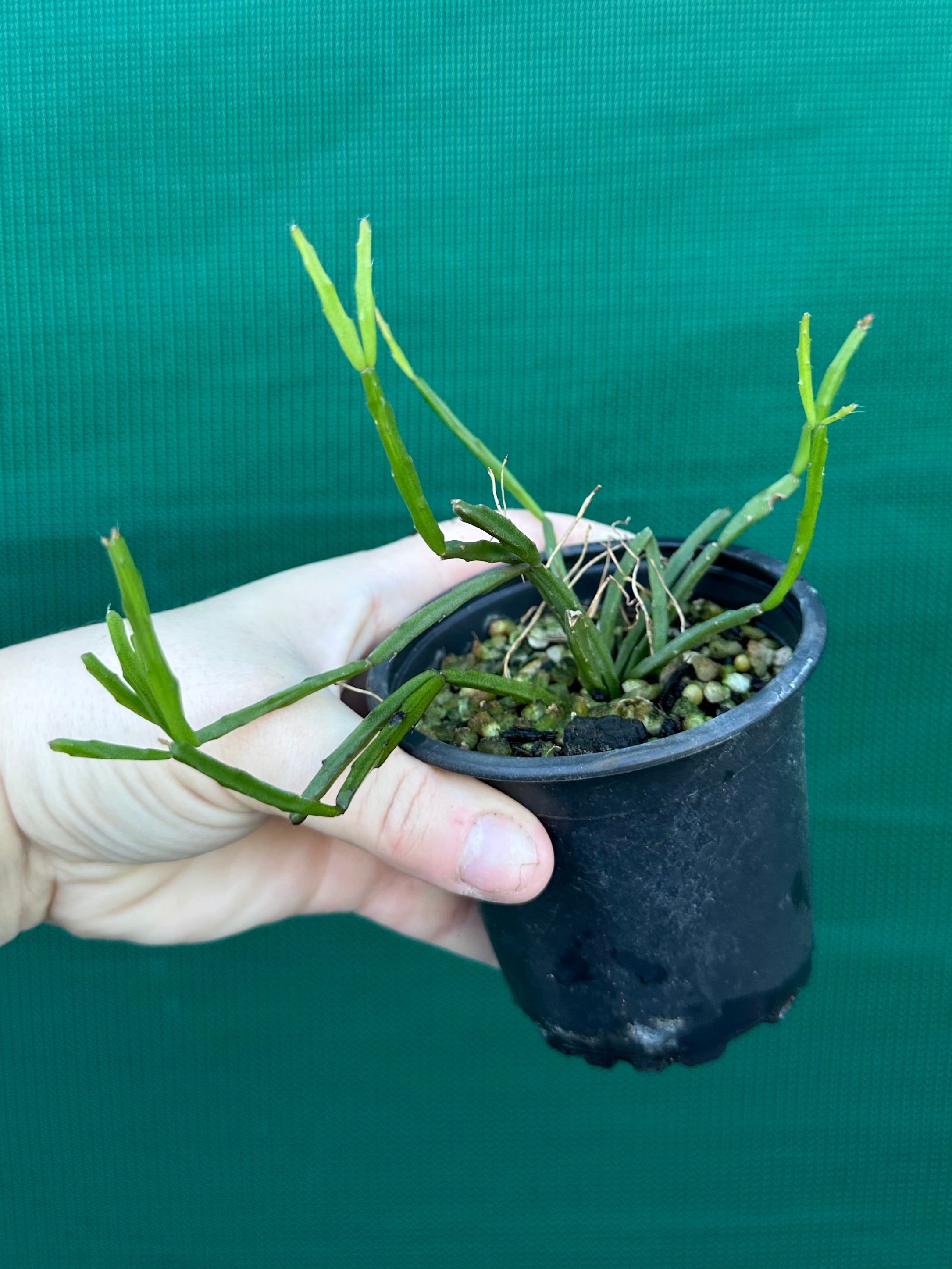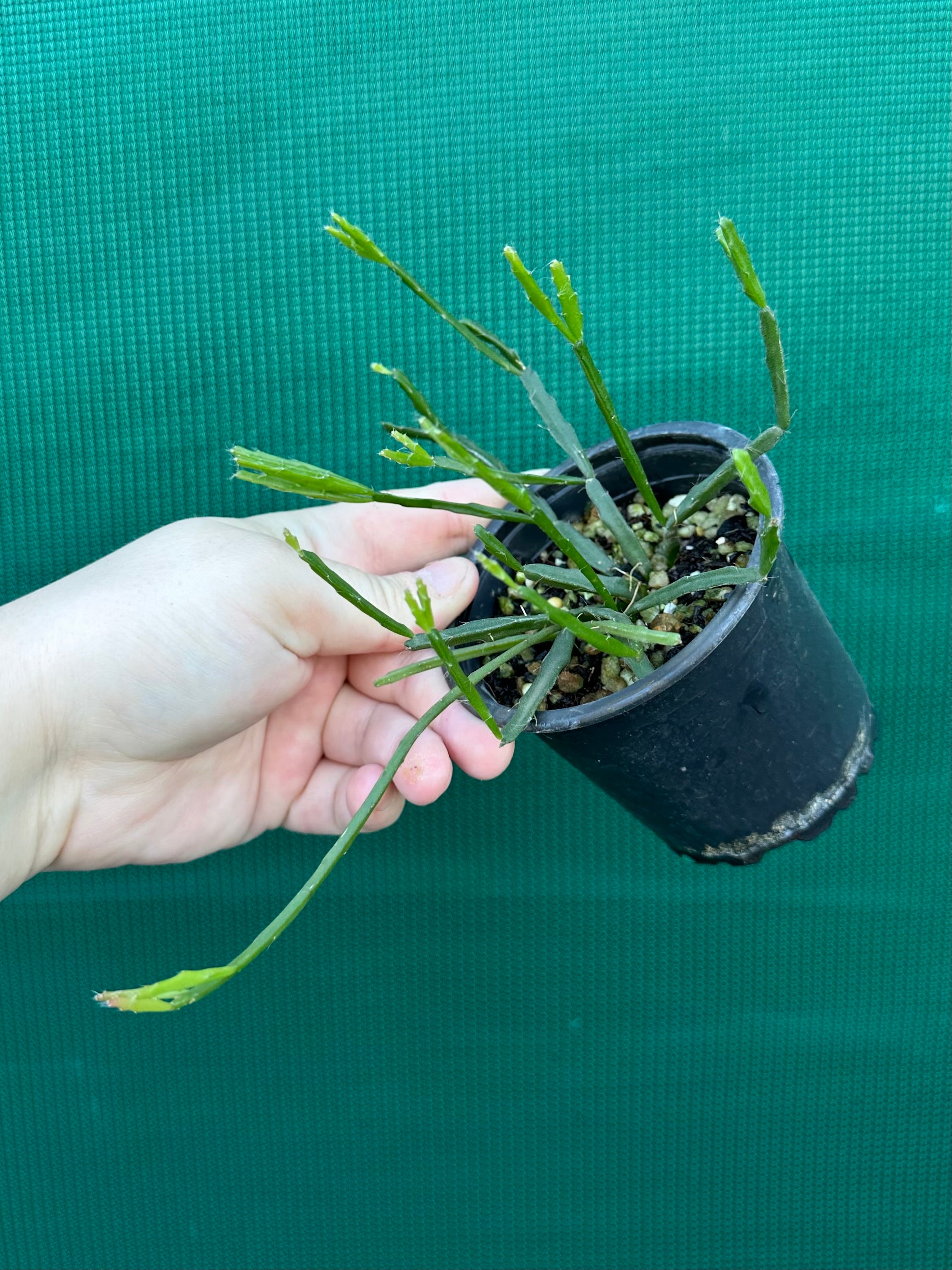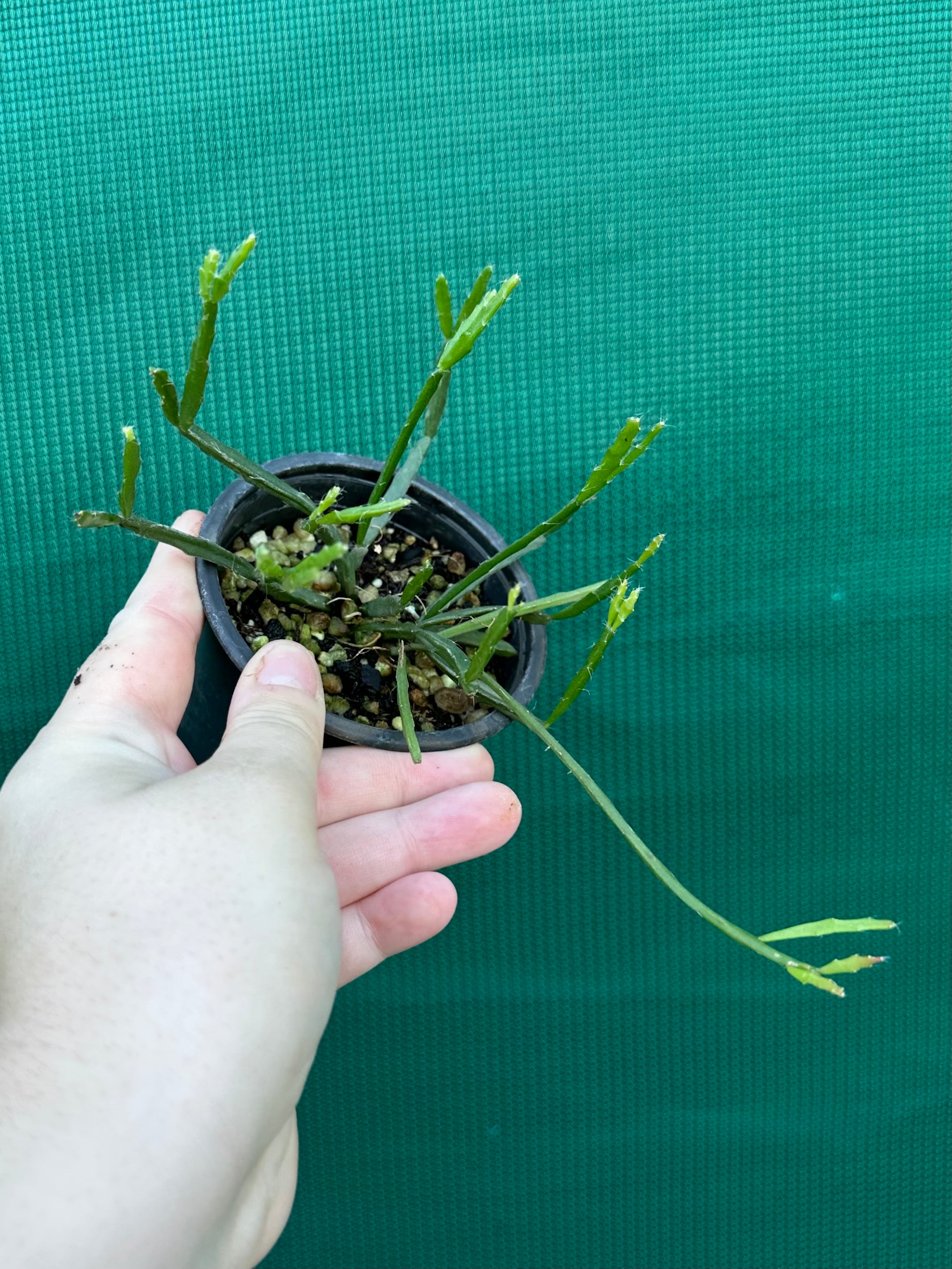 The Rhipsalis genus comprises over 60 species native to South America. Most are epiphytic (live in trees). Many have hanging stems making them excellent hanging basket specimens. Most prefer shade and some humidity.