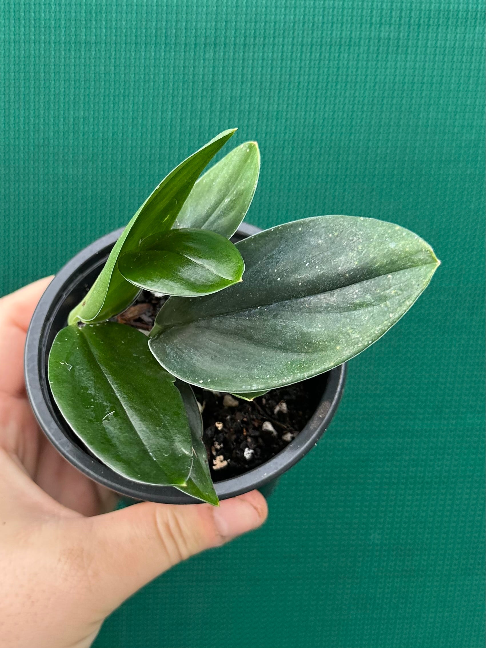 Scindapsus Treubii Dark Form is an easy to grow plant often recommended for low light environments. As it is a trailing plant it will appreciate a totem to climb on. Only when allowed to climb, the leaves can reach its full size.