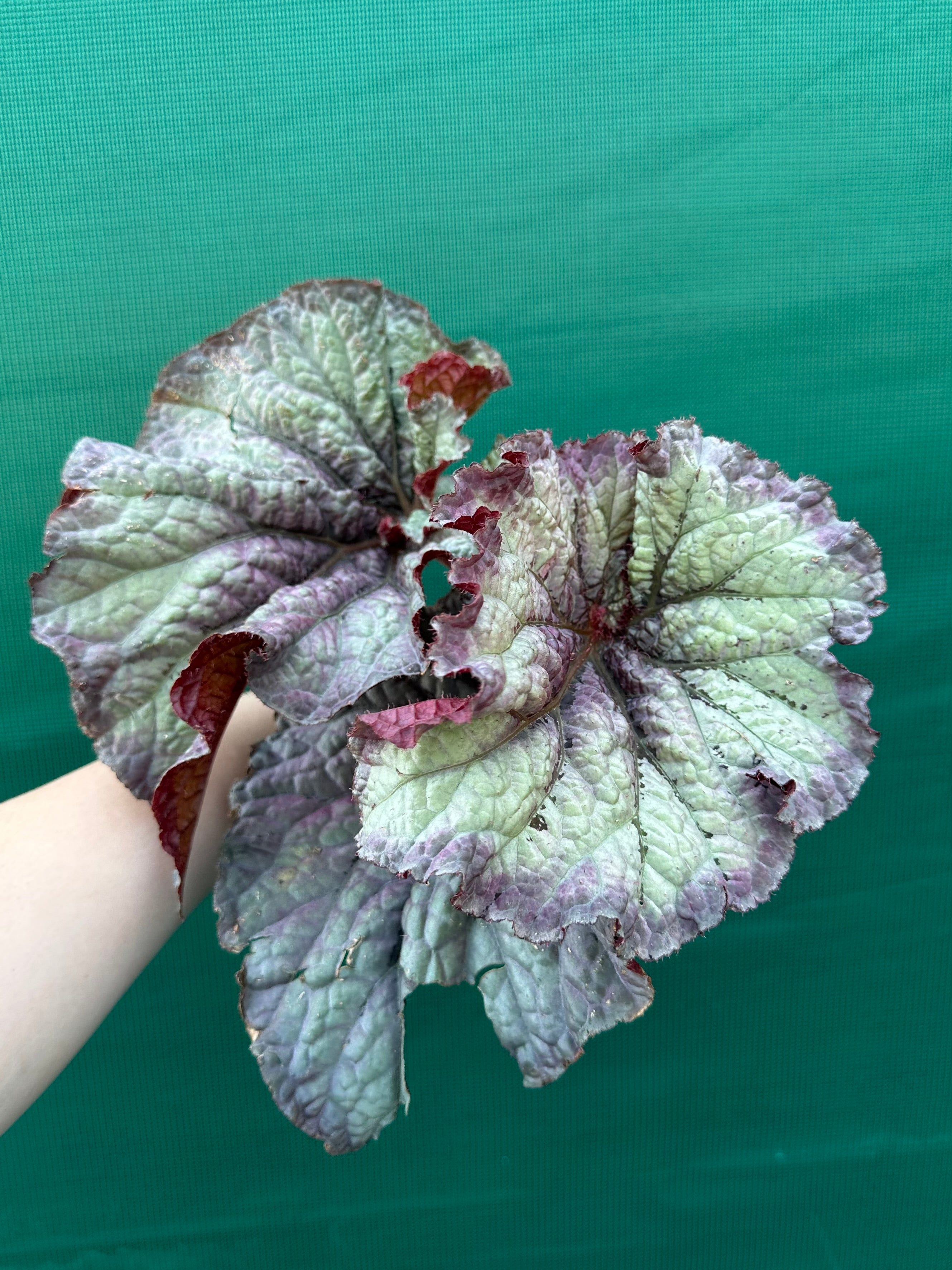 Begonias are robust plants; they come in many sizes, colours and leaf shapes, and bear flowers for many months. This Begonia is sure to be an eye catcher with its super bright vibrant colours and silver hues.